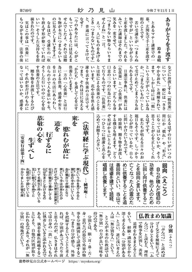 • 寺報「妙乃見山」 投稿日:2025年11月01日